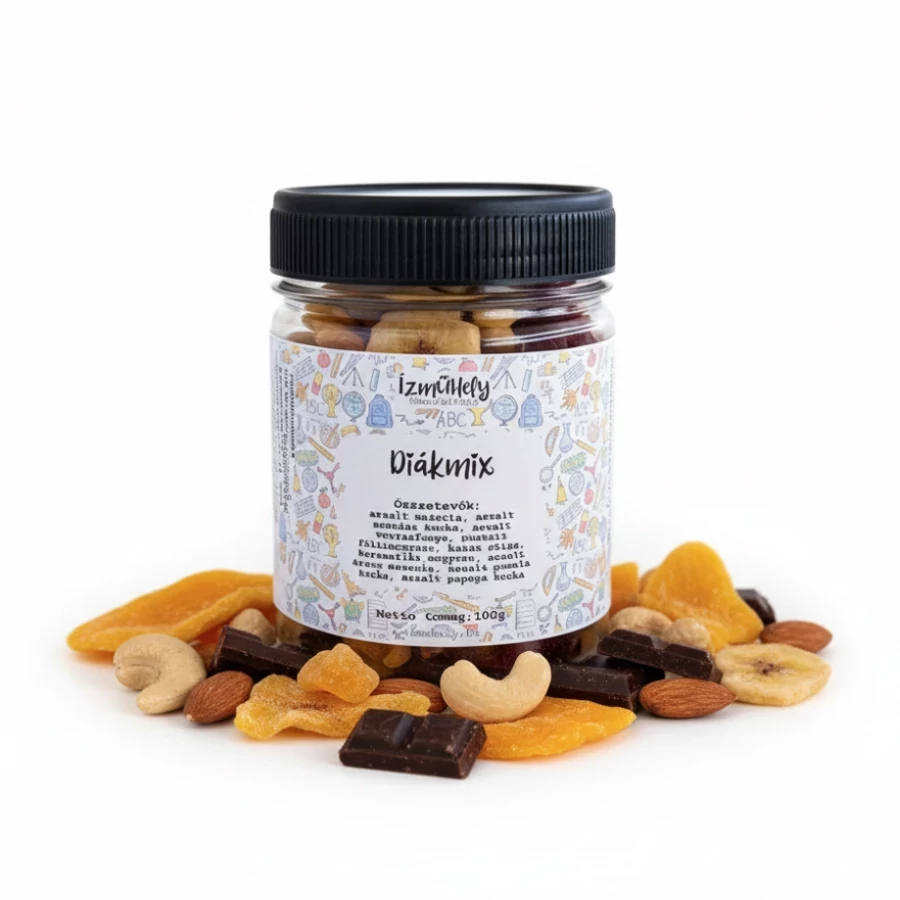 Ez a sokoldalú nassolnivaló kiváló választás tanuláshoz, munkához, sportoláshoz vagy kiránduláshoz, de müzlikhez, desszertekhez vagy salátákhoz is hozzáadható. Egy marék Diákmix mindig gondoskodik arról, hogy egyszerre élvezze a finom ízeket és a természetes energiát.